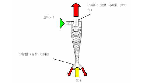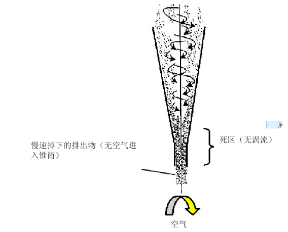 (1)工作原理:含有懸浮固相顆粒的鉆井液,在壓力作用下,以很高的速度由進(jìn)液口進(jìn)入圓柱蝸殼(旋流室內(nèi))。高速旋轉(zhuǎn)的鉆井液,繞錐筒中心旋轉(zhuǎn)產(chǎn)生極大的離心力,并向圓錐筒底部移動。由于鉆井液中的液體與固體存在著密度差,使固相分離出來面近靠錐壁。旋流器的錐筒越向底部半徑越小,鉆井液獲得的角速度越大,從而產(chǎn)生更大的離心力。鉆井液在錐體頂部不但繞中心高速旋轉(zhuǎn),而且產(chǎn)生一個反向旋渦,經(jīng)垂直導(dǎo)流管(中心管)而離開錐筒。鉆井液和鉆井液中的固相顆粒的運(yùn)移速度幾乎相同,這些固相顆粒小半徑處,受到極大的徑向加速度。在徑向加速度(離心力)的作用下,迫使固相顆粒向錐筒壁運(yùn)移。同時,由于旋轉(zhuǎn)下行的固相顆粒慣性很大,將推著它向底部快速運(yùn)動,因此當(dāng)液體反向旋轉(zhuǎn),向上由溢流排除時,這些已分離出來的固相顆粒不可能隨溢流返回,而是由底流口(排砂口)排出。