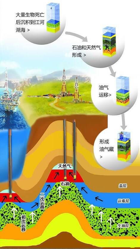 油氣的形成需要充足的沉積有機(jī)質(zhì)、適當(dāng)?shù)臏囟?、壓力、時間、細(xì)菌等物理和化學(xué)及生物化學(xué)條件。