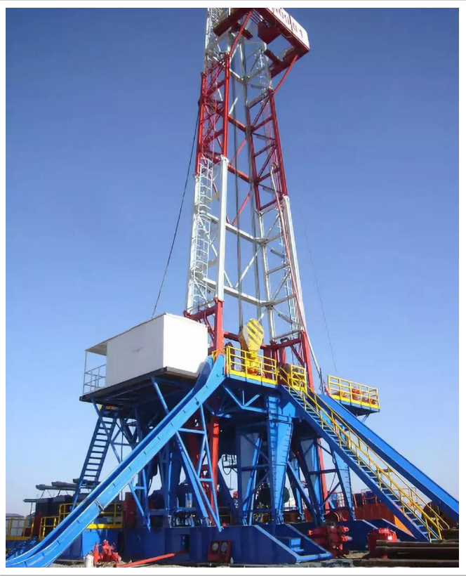 井架和底座用來支撐和安裝各鉆井設備和工具、提供鉆井操作場所。井架用來安裝天車、懸掛游車、大鉤、水龍頭和鉆具,承受鉆井工作載荷,排放立根;底座用來安裝動力機組、絞車、轉盤、支撐井架,借助轉盤懸持鉆具,提供轉盤和地面之間的高度空間,以安裝必要的防噴器和便于泥漿循環(huán)。