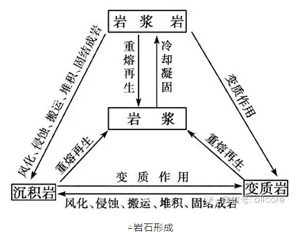 早先形成的任何巖石經(jīng)過長期的日曬雨淋、水流、冰川的沖蝕、風(fēng)吹磨蝕和生物等的風(fēng)化作用,然后被風(fēng)、地表流水(山洪、河流、海潮波浪)和生物等力量的作用(搬運作用),搬到低洼處或適當(dāng)?shù)牡胤匠练e或堆積下來,最后沉積物繼續(xù)增厚,不斷經(jīng)歷壓實、膠結(jié)、重結(jié)晶、交代作用和溶解物質(zhì)的沉淀等成巖作用,才能固結(jié)成沉積巖。這種促使疏松的沉積物變成固結(jié)巖石的作用稱成巖作用。成巖作用是沉積巖形成的最后階段。