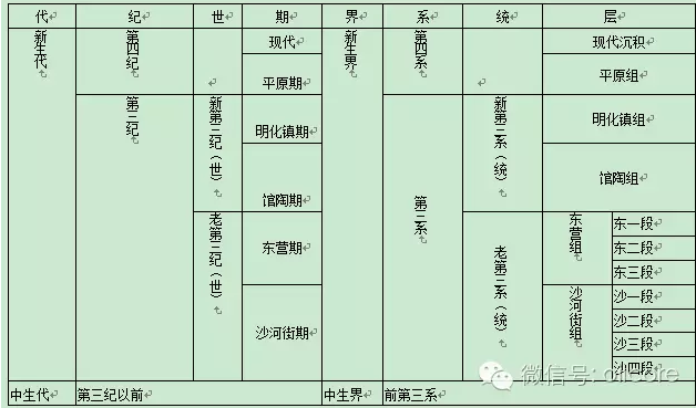 地質(zhì)工作者常常根據(jù)不同地區(qū)地層沉積的特點進行區(qū)域性的分層,自統(tǒng)以下又細分為“組”、“段”。見下表: