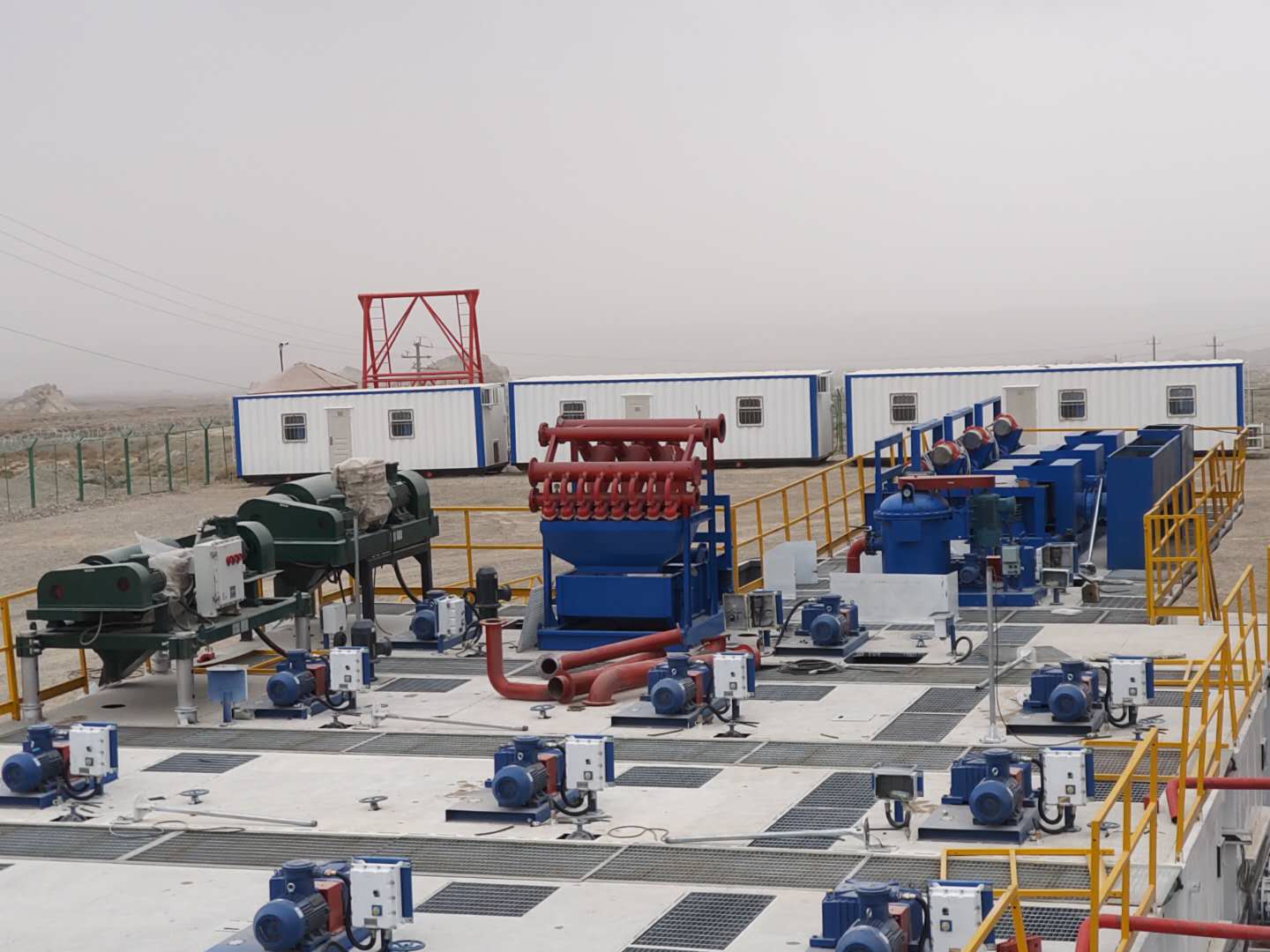ZJ70-4500DBL鉆機配套固控系統(tǒng),包括了11具泥漿罐、HYZS703三聯(lián)振動篩、HYZCQ270真空除氣器、HYQJ250X3S-100X16N除泥除砂一體機、HYLW600中速離心機、HYLW350-1N高速離心機、HYJBQ15攪拌器、HYSLH150-50雙加重系統(tǒng)、HYJQH150-50剪切混漿系統(tǒng)等設備。